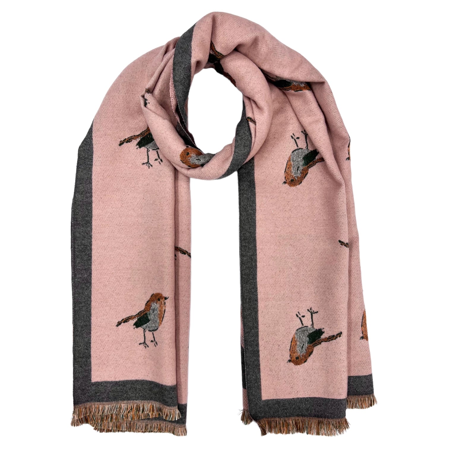 What sets this scarf apart is its reversible design, providing you with two stunning looks in one. One side features the Robin woven print for a bold and eye-catching statement, while the other side offers a solid color for a more versatile and understated look. This dual-sided feature allows you to effortlessly switch up your style to suit different occasions and outfits.