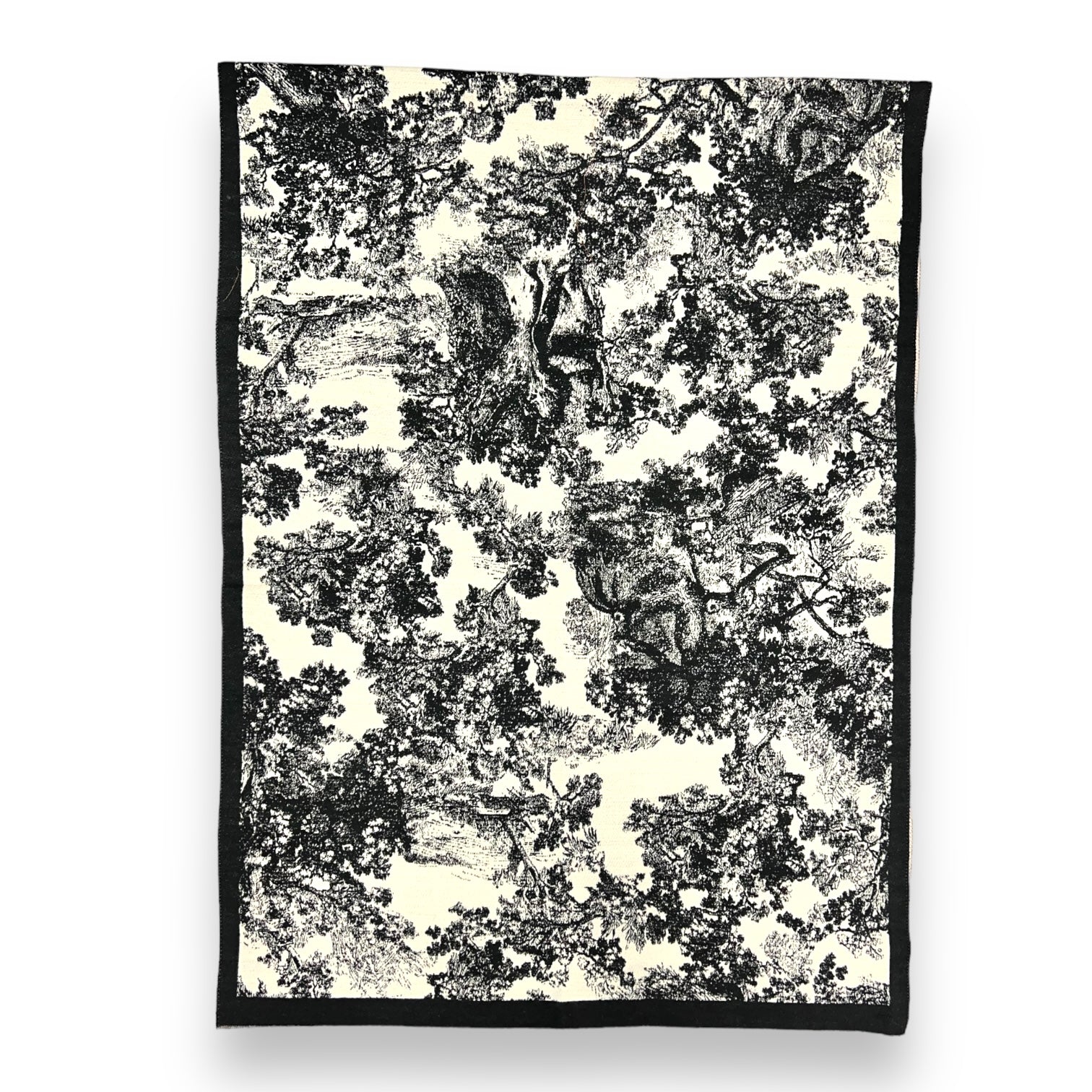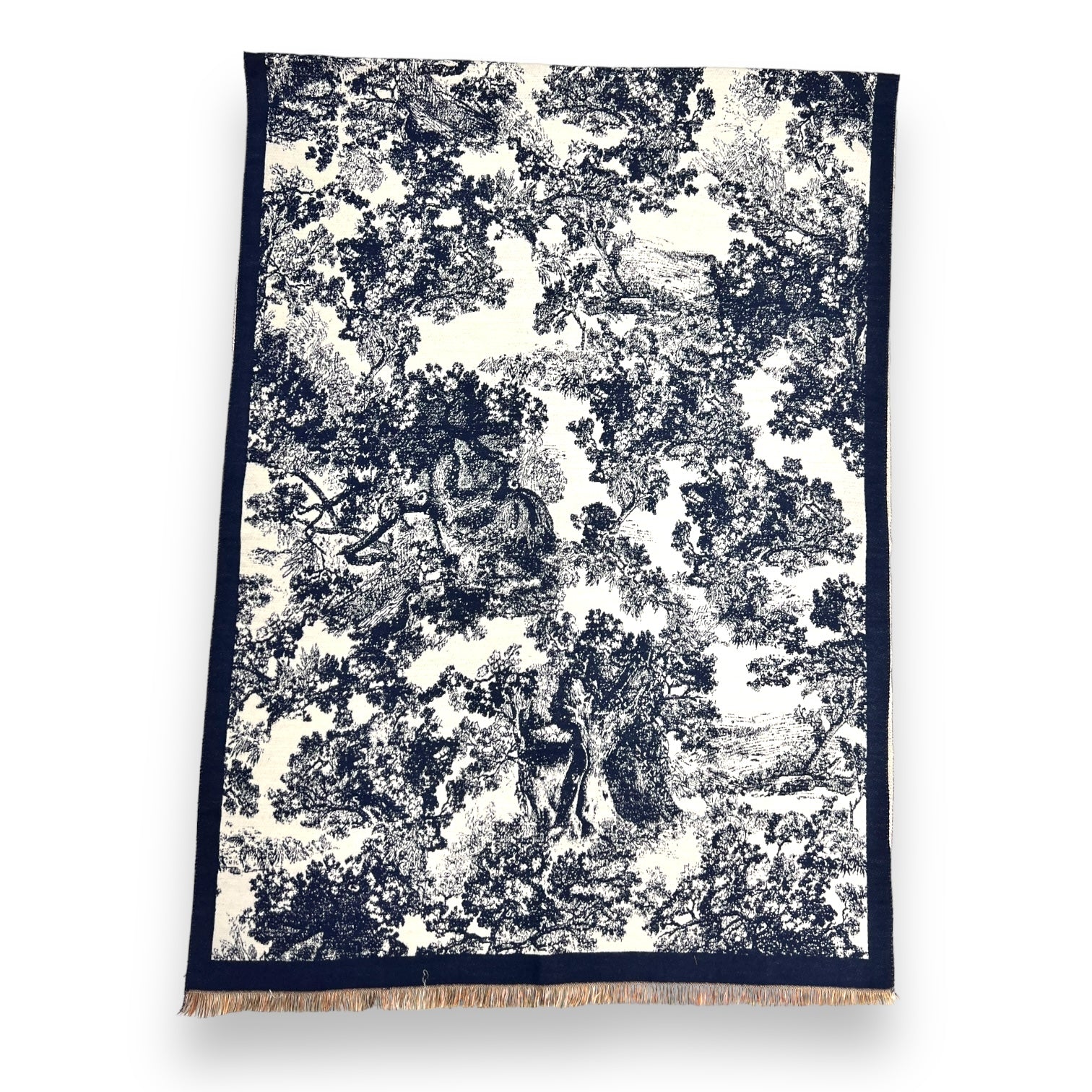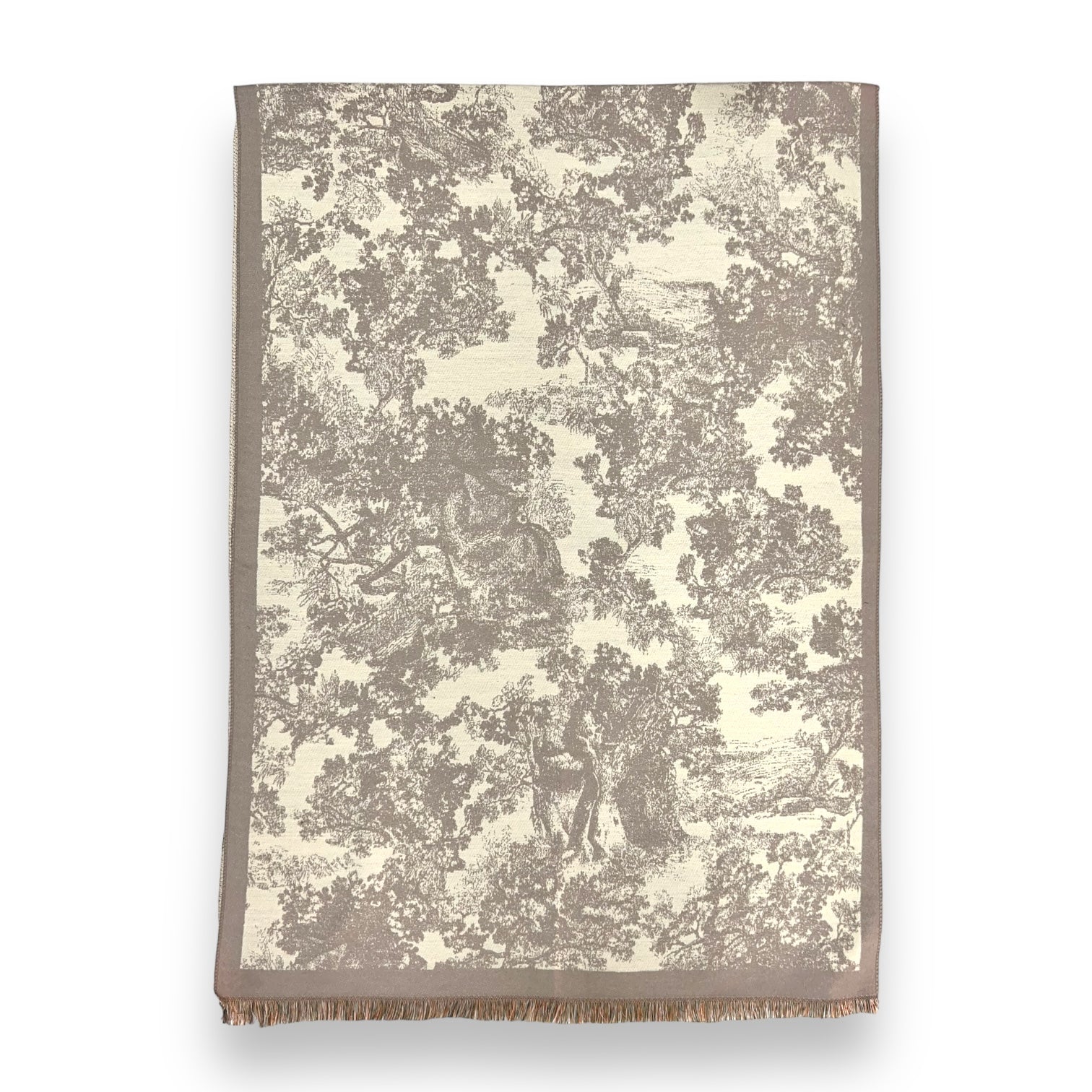 Soft to touch winter forest print on cream canvas. Finished with subtle fringes on each end.